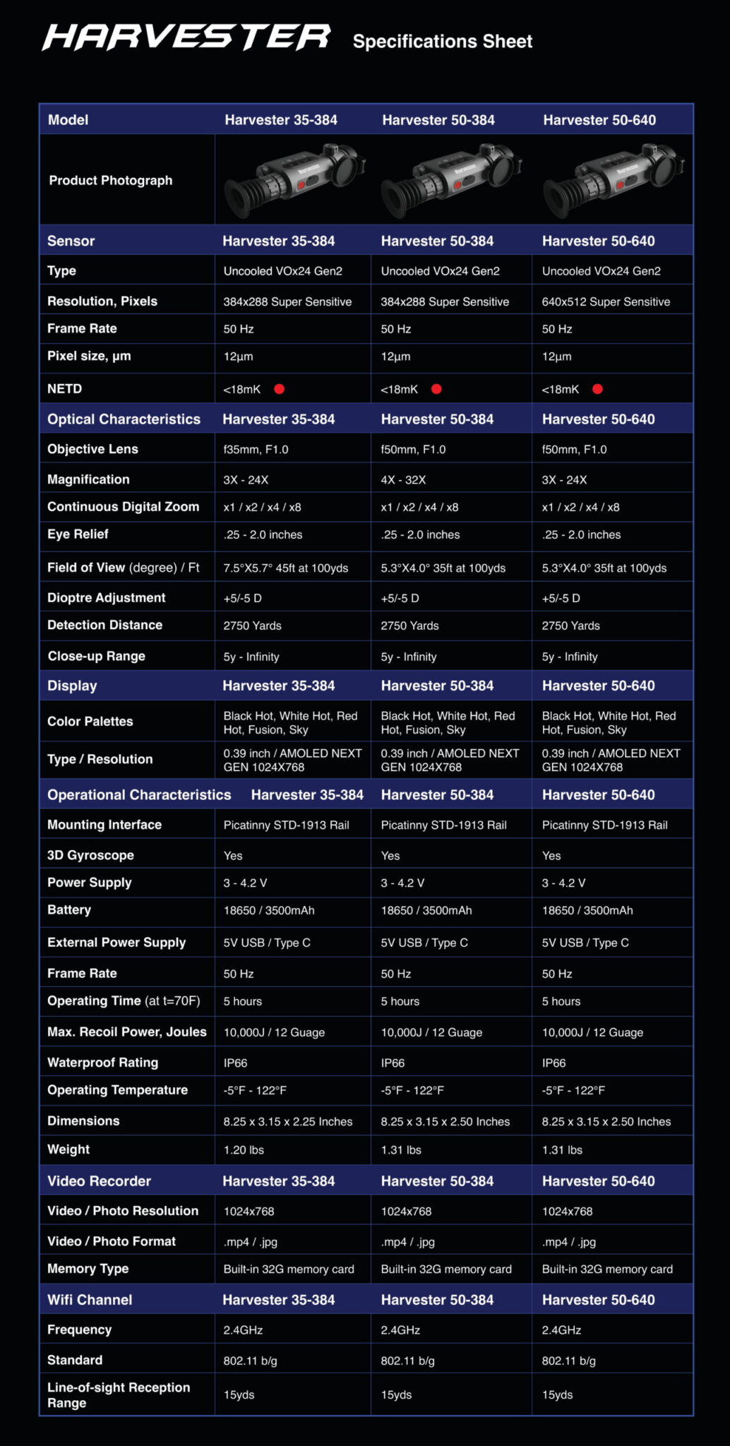 Harvester 50-640 Thermal Riflescope Features: